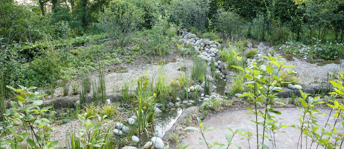 Inspiré des bords de Loire alentours, le jardin brèche est conçu pour accueillir, stocker et infiltrer l’eau, principale source de résilience. Les milieux qui le composent (forêt alluviale, ripisilve hélophyte et milieu humide, grève sèche, milieu aquatique hydrophyte) oeuvrent chacun à l’équilibre de l’écosystème en accueillant avec plaisir les débordements.