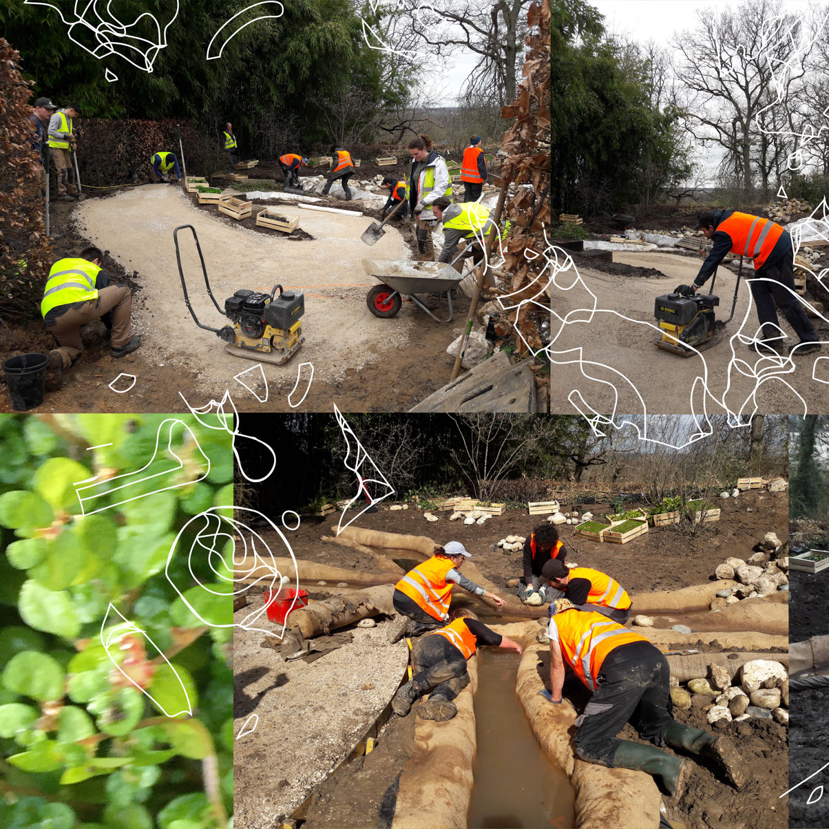 De la conception à la réalisation, le jardin brèche est un processus collectif . Etudiants, techniciens et amis de toutes espèces sont venu.e.s ouvrir le sol et ont contribué à la création de cet ilot vivant.